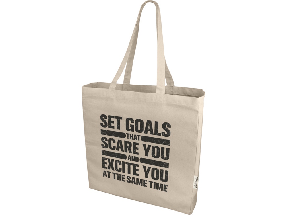 Эко-сумка Odessa, изготовленная из 100% переработанного хлопка, сертифицированного по стандарту GRS, создана для удобного ношения благодаря ручкам на плечо длиной 30 см и большому основному отделению с клинчиком. Независимо от того, хотите ли вы носить с собой тяжелые книги или продукты, эта сумка предназначена для удовлетворения любых потребностей. Методы печати, доступные для этой эко-сумки, также сертифицированы по стандарту GRS, что гарантирует прозрачность и сертификацию всей цепочки поставок. Хлопок плотностью 220 г/м² обеспечивает долговечность и надежность и позволяет переносить вес до 10 кг. Сделано в Индии. Recycled cotton, 220 g/m2.