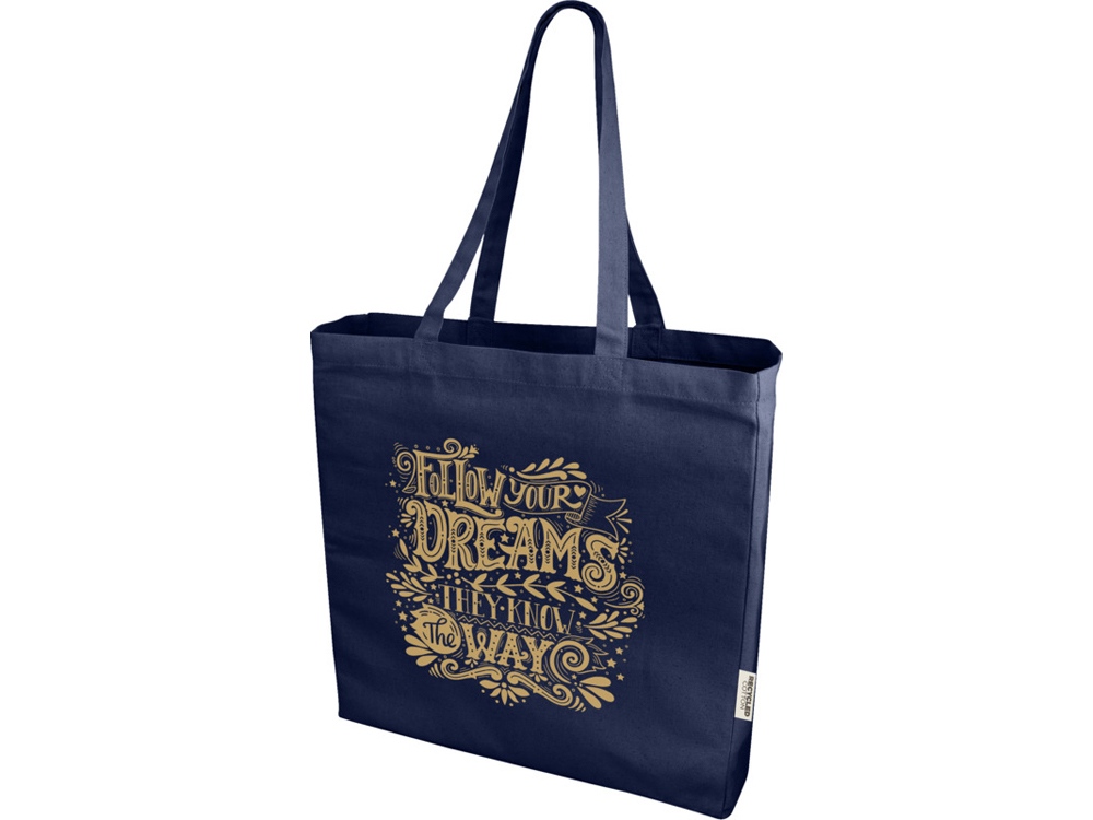 Эко-сумка Odessa, изготовленная из 100% переработанного хлопка, сертифицированного по стандарту GRS, создана для удобного ношения благодаря ручкам на плечо длиной 30 см и большому основному отделению с клинчиком. Независимо от того, хотите ли вы носить с собой тяжелые книги или продукты, эта сумка предназначена для удовлетворения любых потребностей. Методы печати, доступные для этой эко-сумки, также сертифицированы по стандарту GRS, что гарантирует прозрачность и сертификацию всей цепочки поставок. Хлопок плотностью 220 г/м² обеспечивает долговечность и надежность и позволяет переносить вес до 10 кг. Сделано в Индии. Recycled cotton, 220 g/m2.