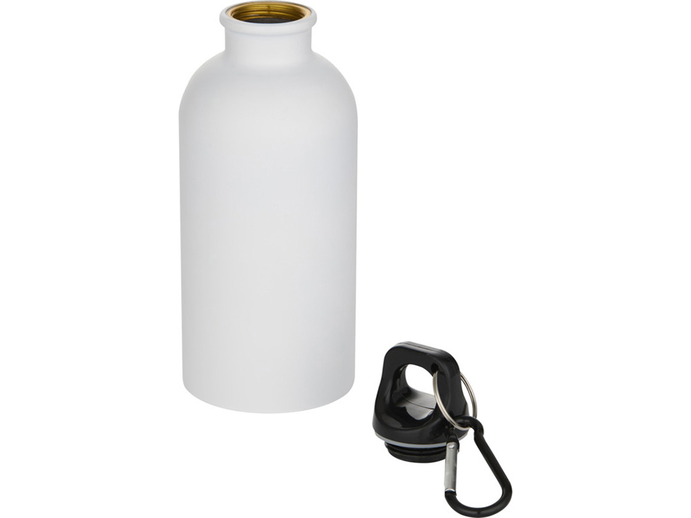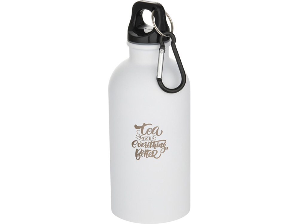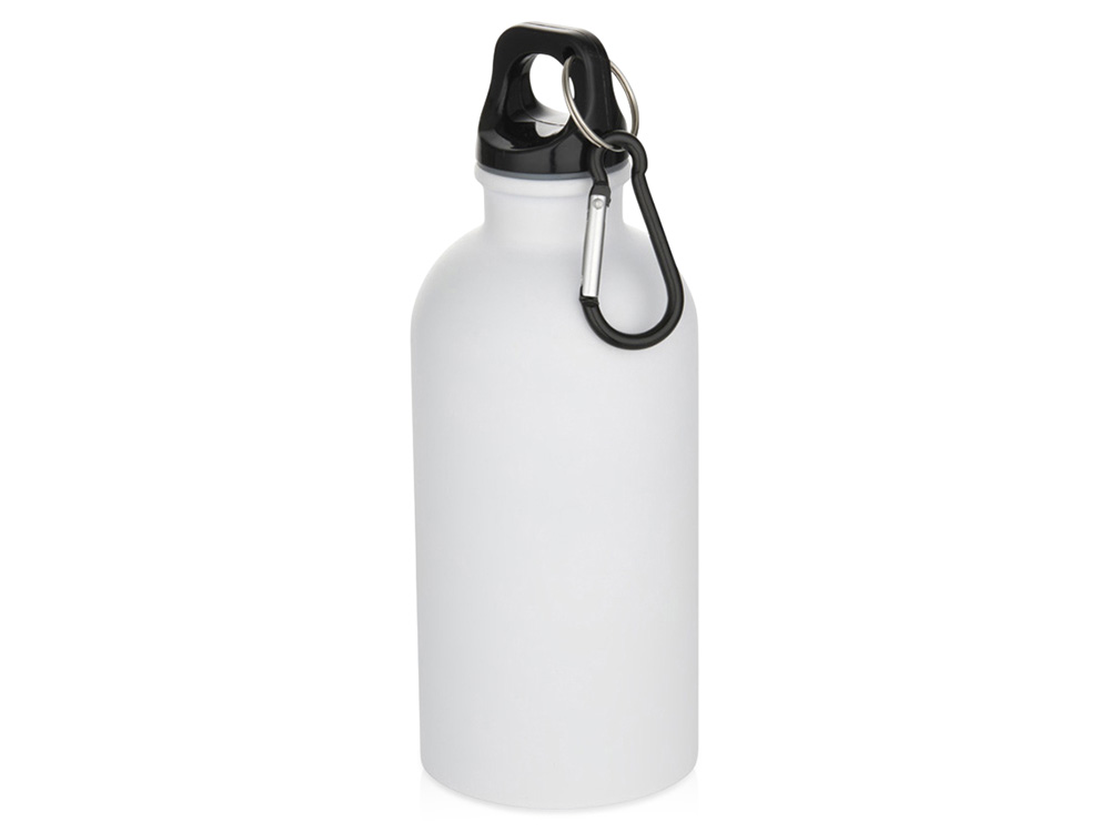 Oregon одностенная бутылка для воды с карабином, изготовленная из нержавеющей стали, сертифицированной по стандарту RCS, объемом 400 мл - Белый купить оптом и в розницу с нанесением логотипа в Санкт-Петербурге