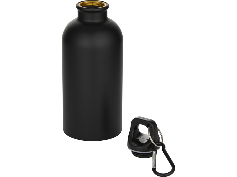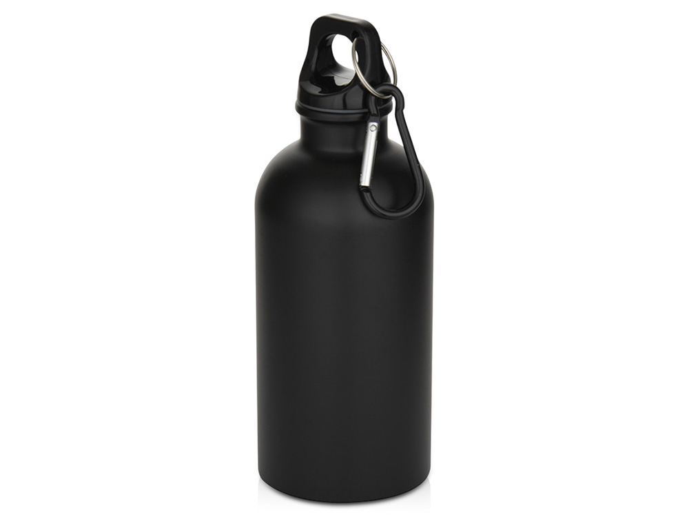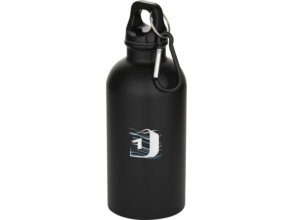 Oregon одностенная бутылка для воды с карабином, изготовленная из нержавеющей стали, сертифицированной по стандарту RCS, объемом 400 мл - Черный купить оптом и в розницу с нанесением логотипа в Санкт-Петербурге