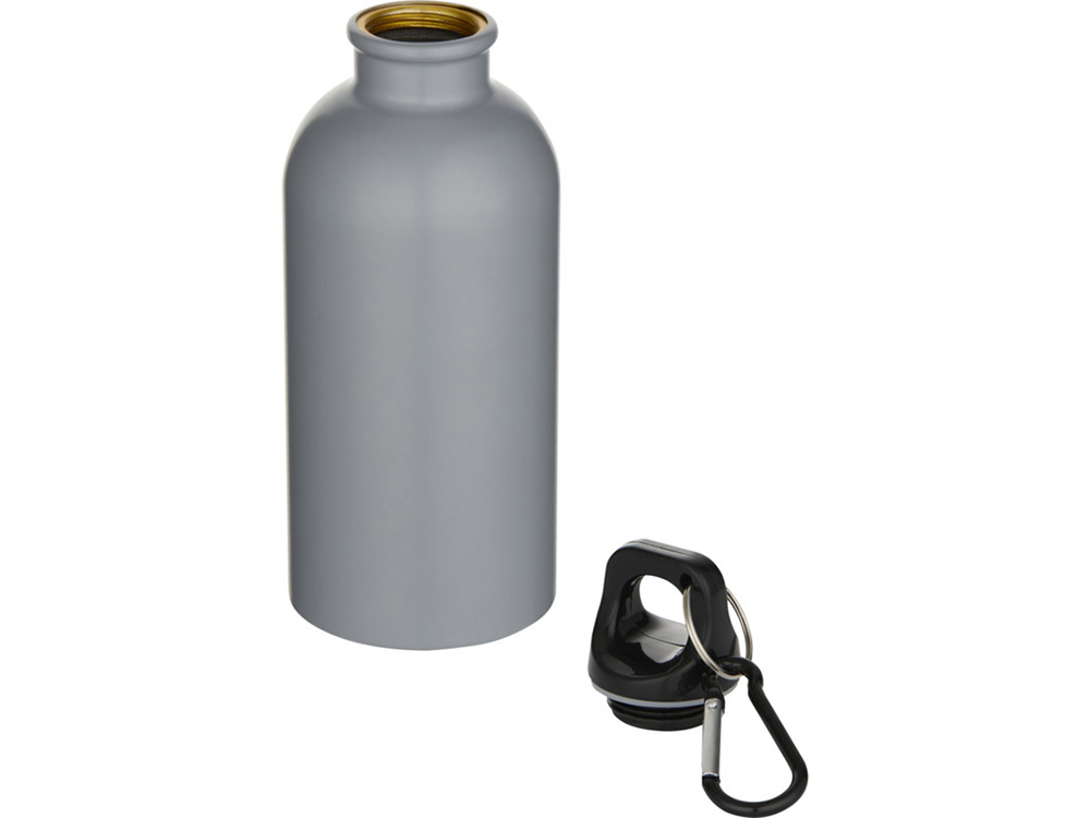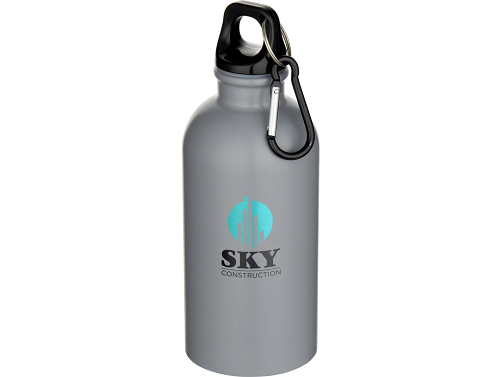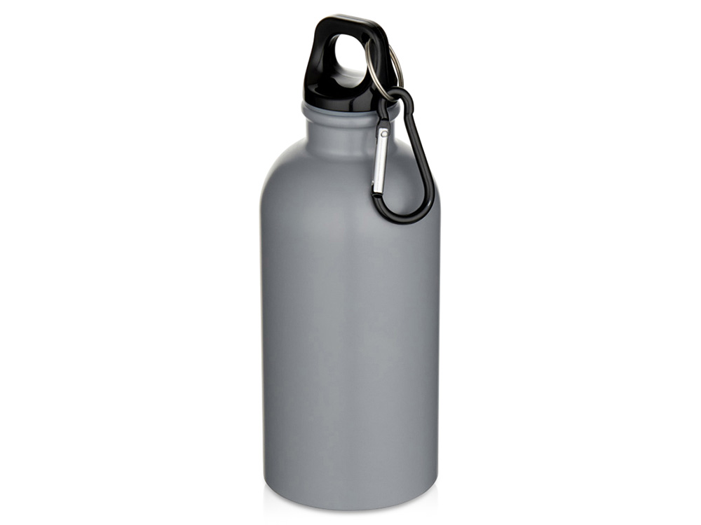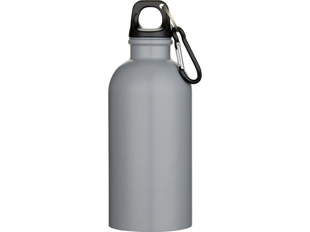 Oregon одностенная бутылка для воды с карабином, изготовленная из нержавеющей стали, сертифицированной по стандарту RCS, объемом 400 мл - Серый купить оптом и в розницу с нанесением логотипа в Санкт-Петербурге