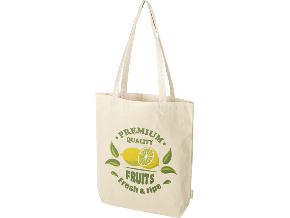 Эко-сумка Orissa с широким дном и длинными ручками, изготовленная из 100% органического хлопка, сертифицированного согласно GOTS, плотностью 270 г/м², станет более ответственным и долговечным выбором для ваших повседневных нужд. Благодаря широкому дну в нем предусмотрено дополнительное место для самых необходимых вещей на любой случай — от похода по магазинам до повседневной прогулки. Объем: 10 литр. Органический хлопок.