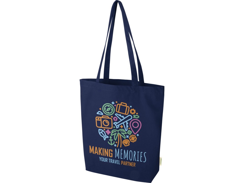 Эко-сумка Orissa с широким дном и длинными ручками, изготовленная из 100% органического хлопка, сертифицированного согласно GOTS, плотностью 270 г/м², станет более ответственным и долговечным выбором для ваших повседневных нужд. Благодаря широкому дну в нем предусмотрено дополнительное место для самых необходимых вещей на любой случай — от похода по магазинам до повседневной прогулки. Объем: 10 литр. Органический хлопок.