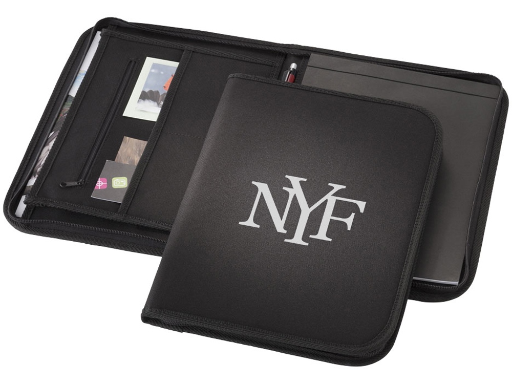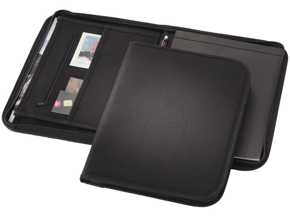 Папка Berkeley A4 на молнии. Папка с застежкой-молнией, карманами для документов и блокнотом с 20 страницами линованной бумаги. Ручка и принадлежности не включены. Полиэстер 600D.