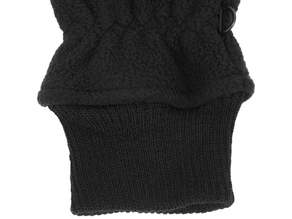 Флисовые перчатки с вязаной манжетой для комфортной посадки по руке - застежка для скрепления перчаток вместе - тачскрин вставки на указательном и большом пальце - накладка на ладошке для укрепления и эргономики - резинка на запястье для лучшего прилегания перчаток по руке