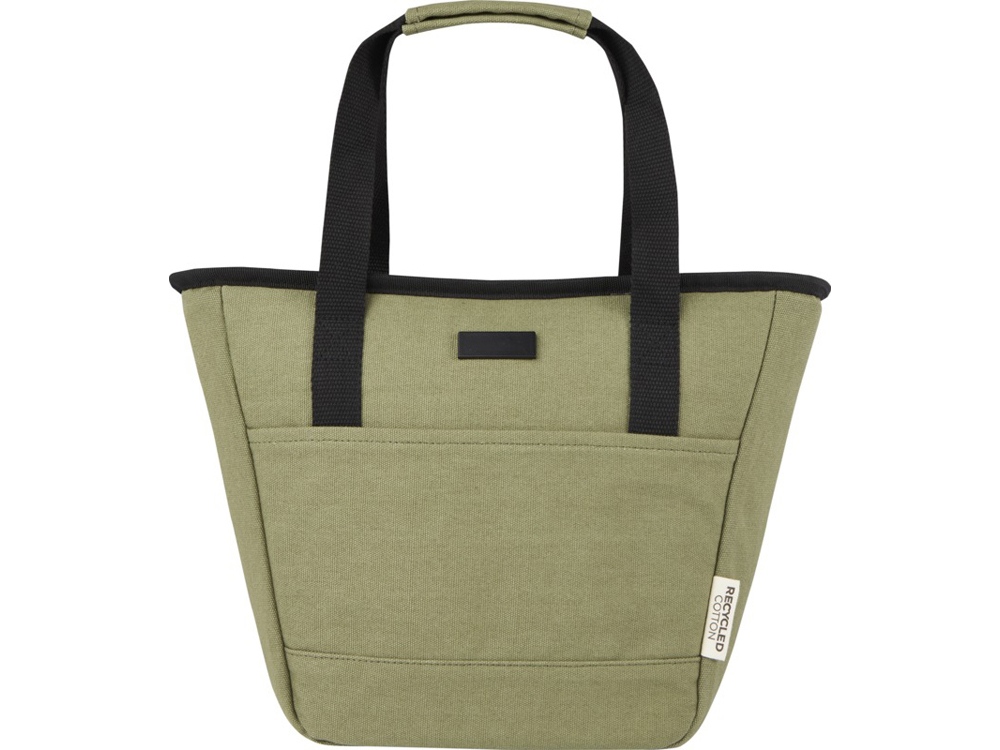 Изготовленная из высокопрочных экологичных материалов, брезента и подкладки из переработанного ПЭТ, соответствующих стандарту GRS, пищевая сумка-холодильник на 9 банок Joey имеет изолированное главное отделение с подкладкой из PEVA, пригодной для применения с пищевыми продуктами, открытый карман спереди и две усиленных вязанных ручки для удобной переноски. Декоративная металлическая пластина может придать логотипу сияние благодаря утонченному матовому покрытию.