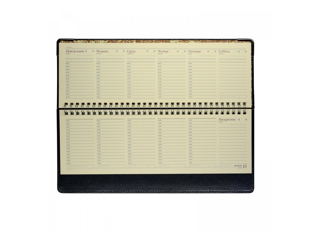 Планинг Persona – идеальный баланс между практичностью и статусностью. Великолепный переплетный материал прошит тонкой шелковой нитью в цвет обложки. Благородство в облик планинга добавляют металлические уголки. На контрасте с темным цветом обложки, блок состоит из листов бежевого цвета плотностью 70 г/кв.м. Раздел планирования дополнен справочной информацией на 21 страницах. Вечная и никогда не стареющая классика! Отличный дует с ежедневником Persona!