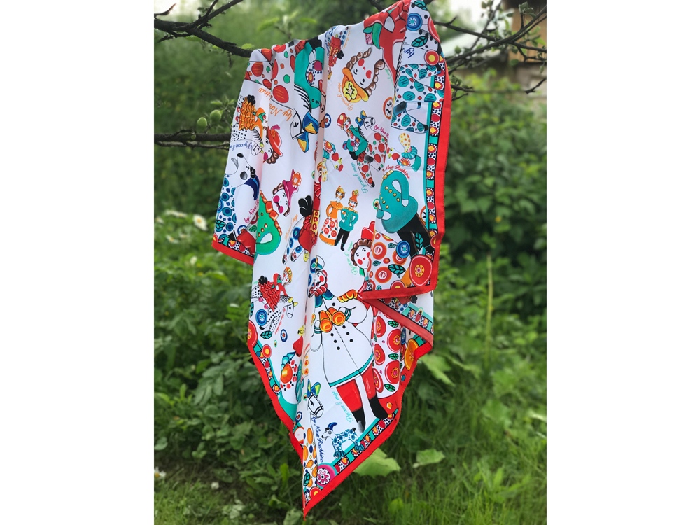 Дымковская игрушка - это один из самых старинных промыслов России, существующий более четырёхсот лет. Нарядная и жизнерадостная, она ценит компанию, радость и задор. Именно такое настроение несёт в себе дизайн платка с изображением милых и таких родных сердцу образов. Забудьте про одиночество, уныние и хандру: в таком платке захочется улыбаться и парить в воздухе не только Вам, но и окружающим! Насыщенные, глубокие цвета, искренность и теплота народного искусства - история России ещё никогда не была столь выразительной и красноречивой. Советы по уходу: -Наши платки сделаны с душой и нуждаются в ответной душевной заботе и внимании. -Они практически не мнутся, очень приятные на ощупь, нежные и мягкие. Любят бывать на людях, посещать светские мероприятия, не выносят одиночества. -Всегда готовы к экспериментам и смелым сочетаниям. Прослужат верой и правдой долгие годы, никогда не выйдут из моды и всегда будут уместны и кстати. -Ручная стирка 40 градусов.