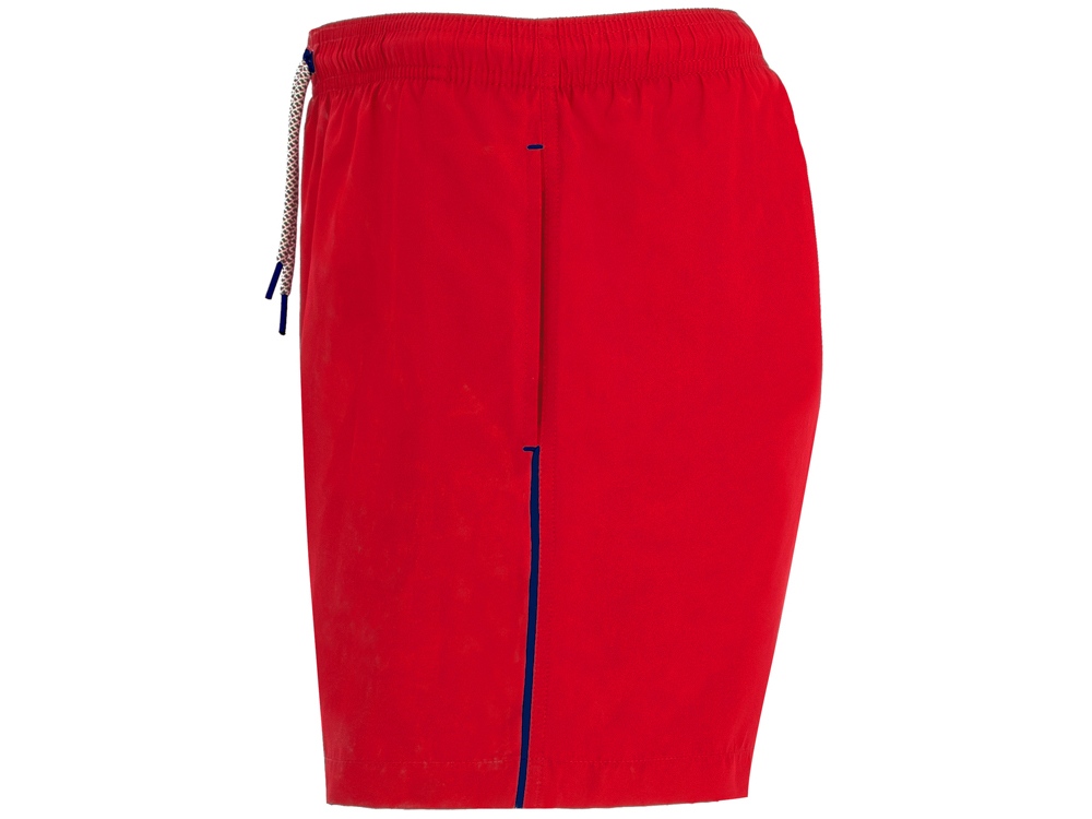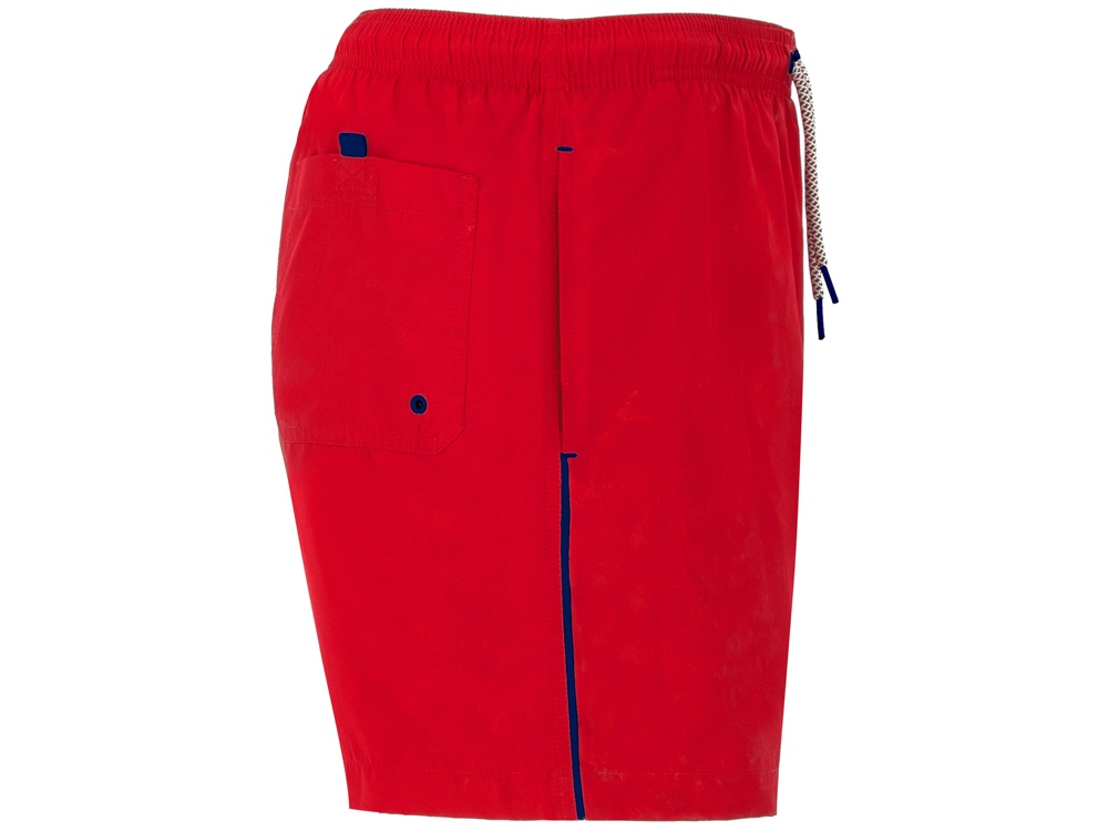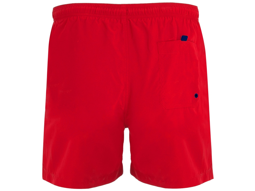 Плавательные шорты с двумя боковыми карманами. Эластичный пояс с регулируемым шнурком и контрастными металлическими люверсами. Задний карман с люверсом.