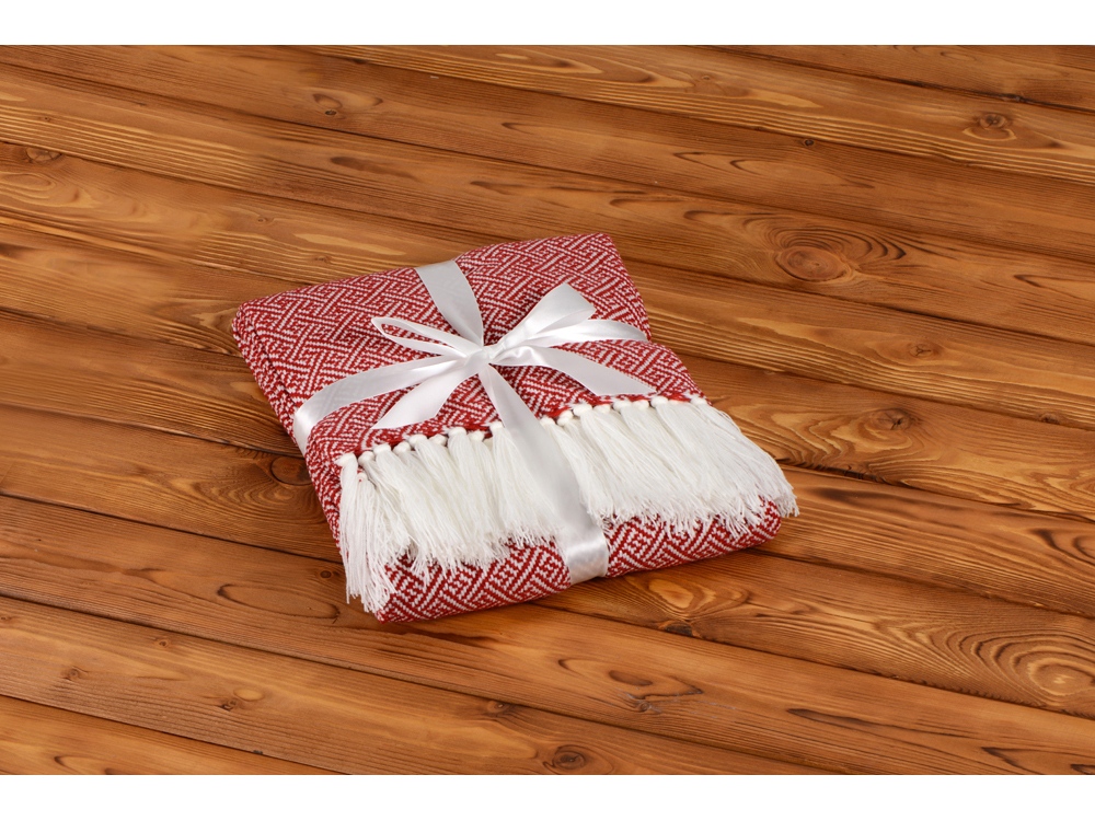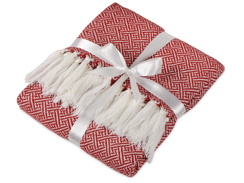 Плед акриловый Tassel с белой бахромой, красный купить оптом и в розницу с нанесением логотипа в Санкт-Петербурге