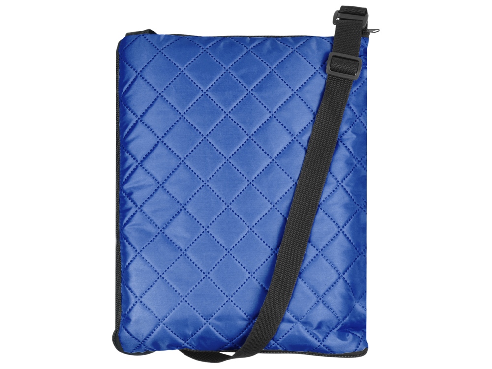 Двухсторонний плед с водоотталкивающим покрытием с одной стороны и мягким флисом с другой. Складывается в сумку на плечо и фиксируется с помощью молнии. В собранном виде имеет регулируемый по длине ремень для переноски и наружный карман для мелочей.