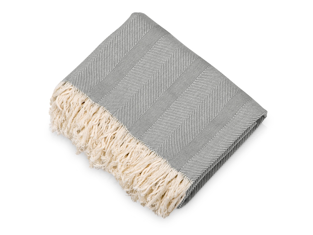 Плотный плед из натурального хлопка с бахромой по бокам. Можно использовать как одеяло или как покрывало для украшения интерьера.