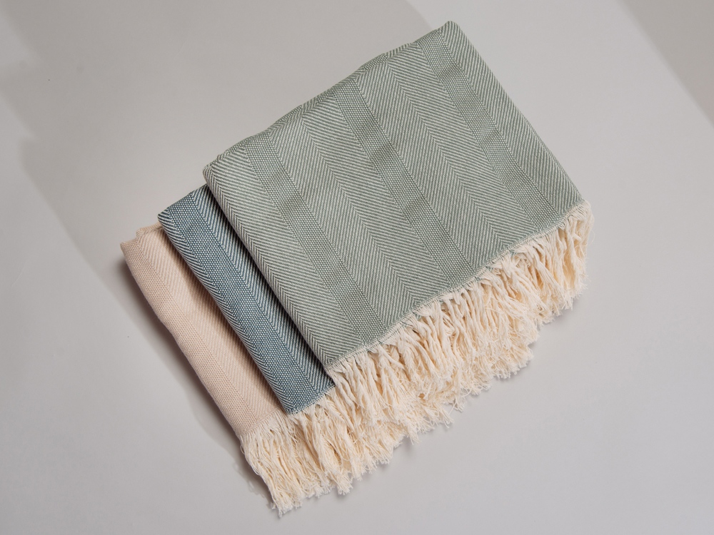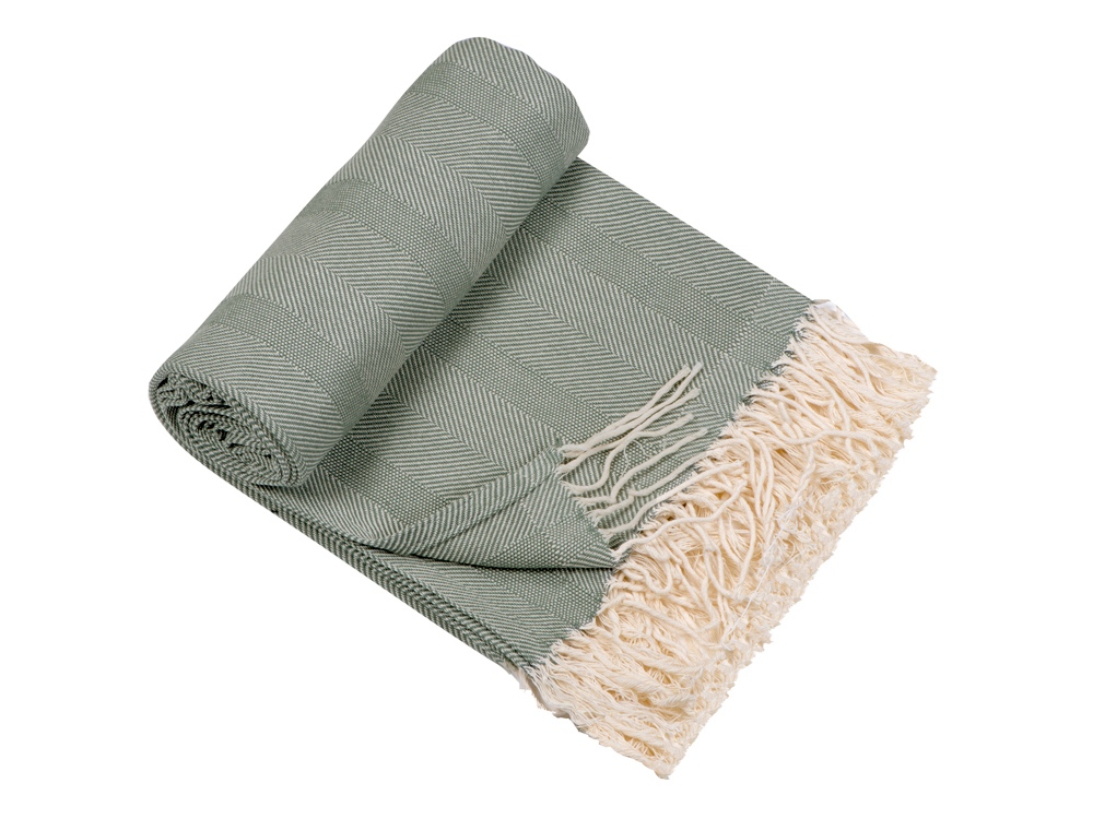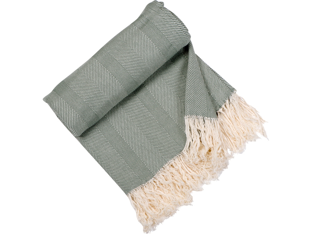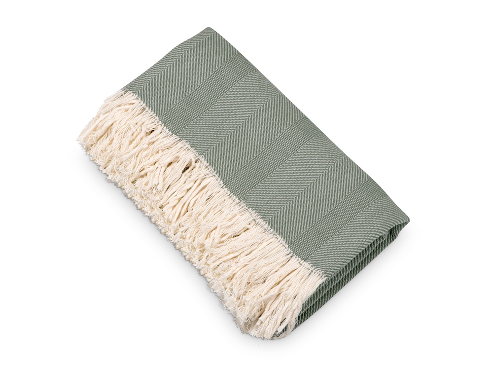 Плотный плед из натурального хлопка с бахромой по бокам. Можно использовать как одеяло или как покрывало для украшения интерьера.