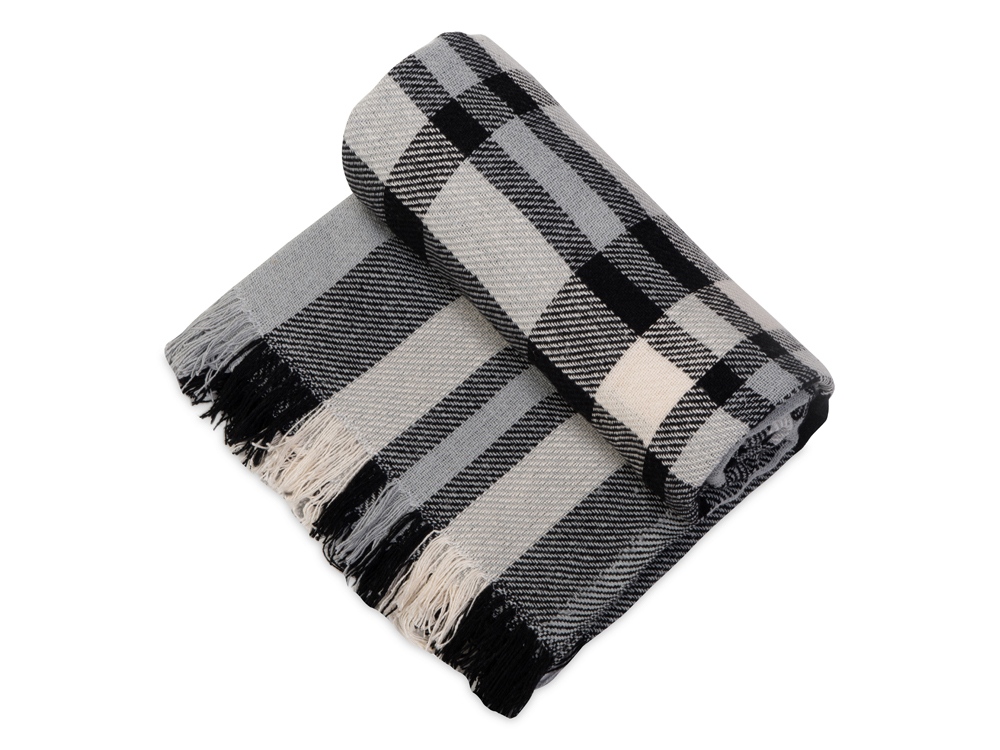 Плед Liner с бахромой, 140*205 см., серый с черным купить оптом и в розницу с нанесением логотипа в Санкт-Петербурге