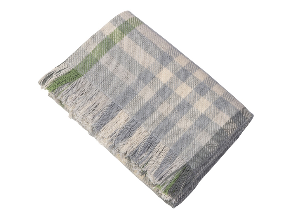 Плед Liner с бахромой, 140*205 см., серый с фисташковым купить оптом и в розницу с нанесением логотипа в Санкт-Петербурге