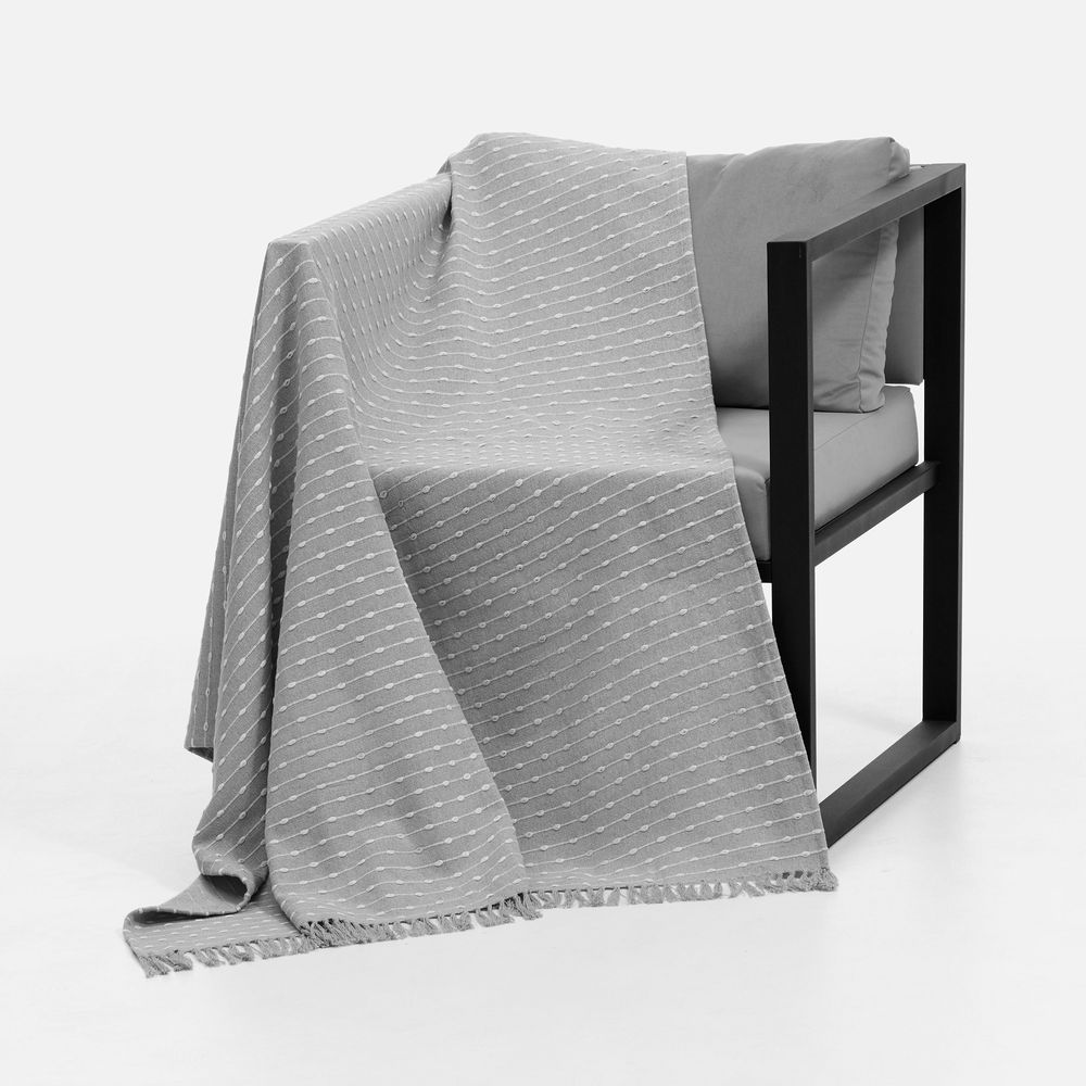 Фактурный узор в технике счетной вышивки, а также спокойные природные оттенки пледа Shimla создадут комфортное визуальное ощущение наряду с приятными тактильными ощущениями от натуральной основы пледа.