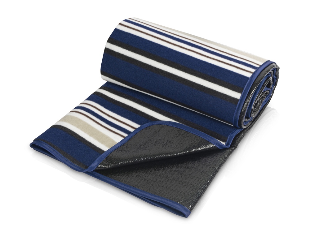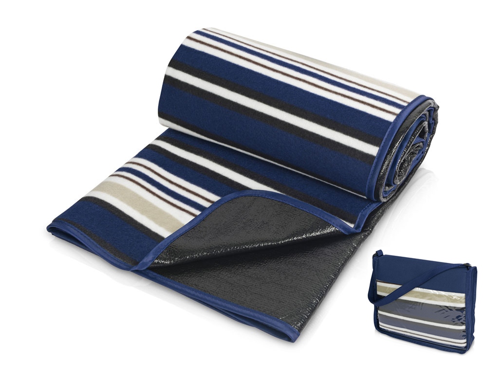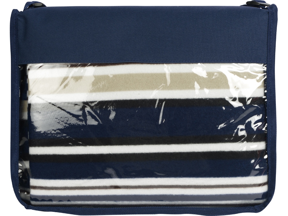 Плед в полоску в сумке Junket, синий купить оптом и в розницу с нанесением логотипа в Санкт-Петербурге