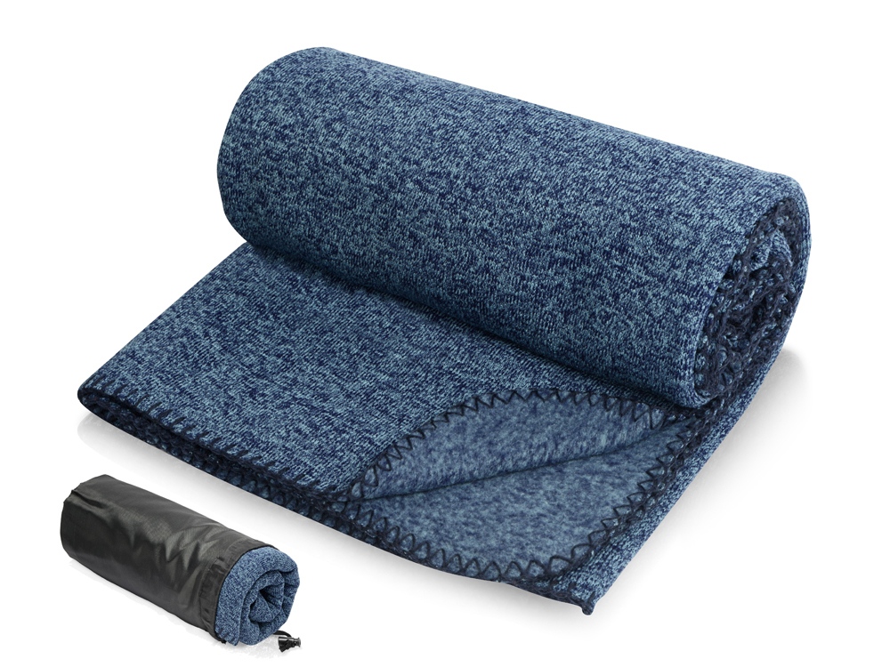 Плед вязаный Blend в чехле, синий купить оптом и в розницу с нанесением логотипа в Санкт-Петербурге