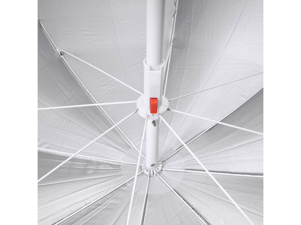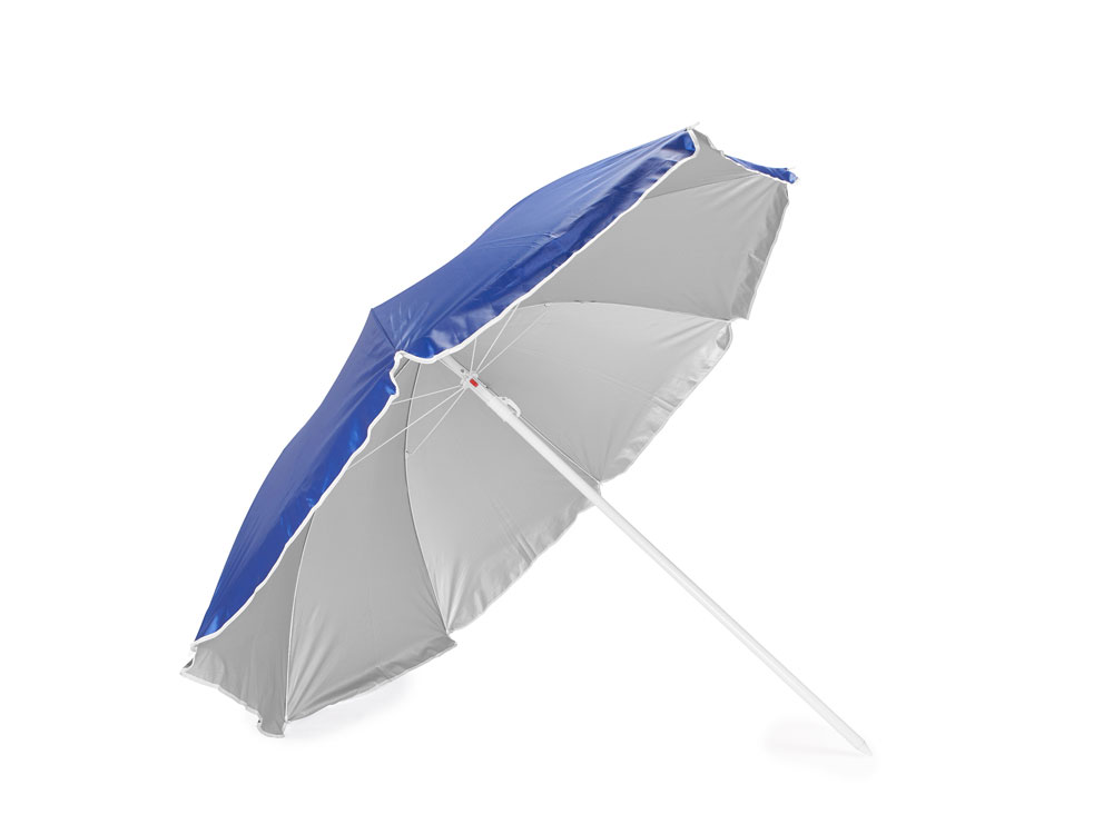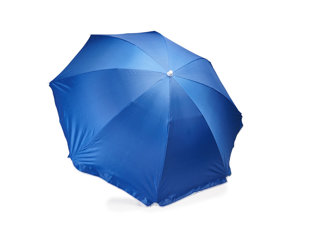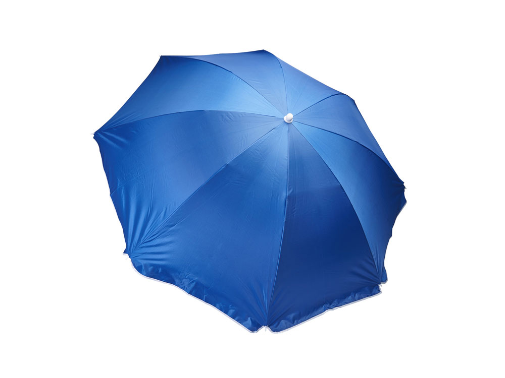 Пляжный зонт с 8 панелями из прочного нейлона с защитой от ультрафиолета. Доступен в широком ассортименте цветов. Стержень с регулируемой высотой и белыми спицами. Купол окантован двойной строчкой. В комплекте чехол для переноски с плечевым ремнем.