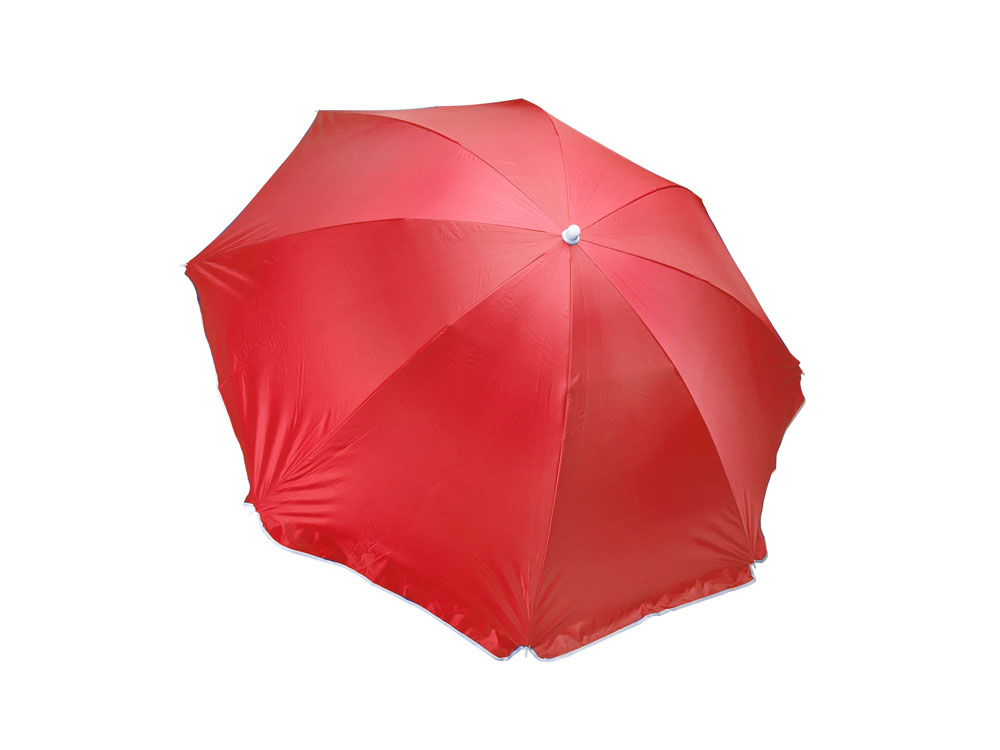 Пляжный зонт с 8 панелями из прочного нейлона с защитой от ультрафиолета. Доступен в широком ассортименте цветов. Стержень с регулируемой высотой и белыми спицами. Купол окантован двойной строчкой. В комплекте чехол для переноски с плечевым ремнем.