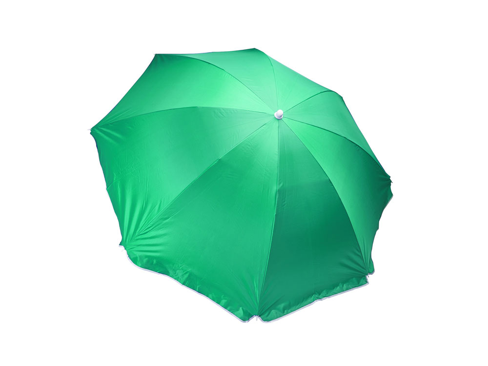 Пляжный зонт с 8 панелями из прочного нейлона с защитой от ультрафиолета. Доступен в широком ассортименте цветов. Стержень с регулируемой высотой и белыми спицами. Купол окантован двойной строчкой. В комплекте чехол для переноски с плечевым ремнем.