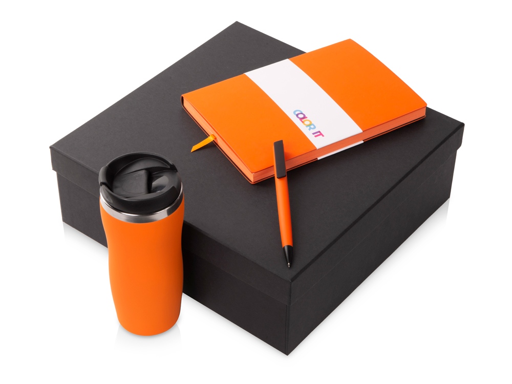 Подарочный набор c блокнотом С1, ручкой и термокружкой Mony Steel, оранжевый
