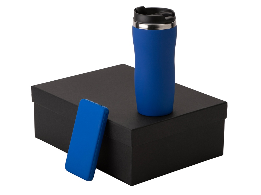 Подарочный набор c вакуумной термокружкой и повербанком С2, синий