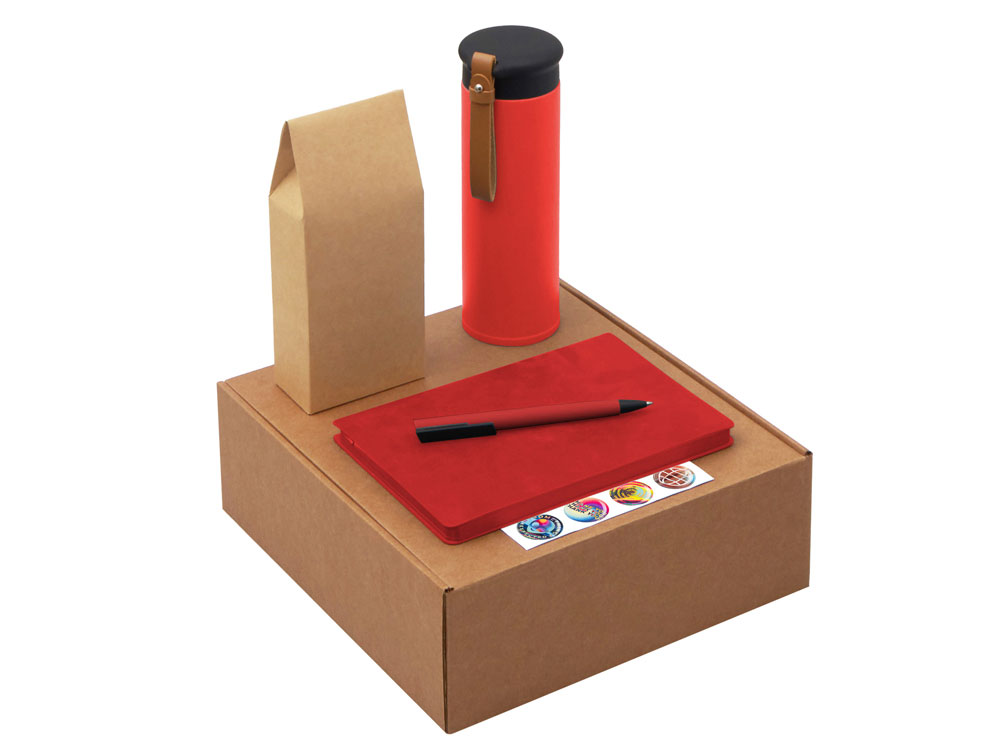 Функциональный и сбалансированный набор для сотрудников, партнёров или клиентов — отлично подойдёт для welcome-боксов, тимбилдингов, внутренних мероприятий и корпоративных праздников. Состав набора: • Блокнот — удобный формат для записей, брифов и ежедневных задач • Ручка — классическая, с необычным слайдером и приятной soft-touch поверхностью делает письмо более комфортным. • Термос из долговечной нержавеющей стали с двойными стенками, вакуумная изоляция между которыми помогает сохранять температуру напитков в течение долгого времени. Термос идеально подходит для заваривания чая: специально для этого в комплекте идет металлическое ситечко с ручкой, которое не пропустит ни одной чаинки. • Классический чёрный байховый чай поможет взбодриться и освежить мысли, поэтому его можно пить утром для лёгкого пробуждения или днём — чтобы восстановить силы и сосредоточиться. Вечером он станет приятным завершением дня в сочетании с десертом или лёгкими закусками. • Набор стикеров — для ярких акцентов и персонализации вещей; • Универсальный ложемент обеспечивает аккуратное размещение и надёжную фиксацию элементов, делая набор эффектным и презентабельным при вручении. • Дополнительное преимущество — набор доступен в конструкторе наборов: компоненты можно заменить и собрать индивидуальный вариант под стиль компании или вкусы получателя. • Готовое решение для корпоративных подарков • Все элементы функциональны и актуальны для повседневного использования