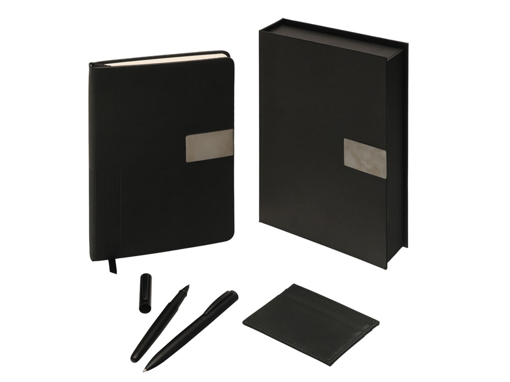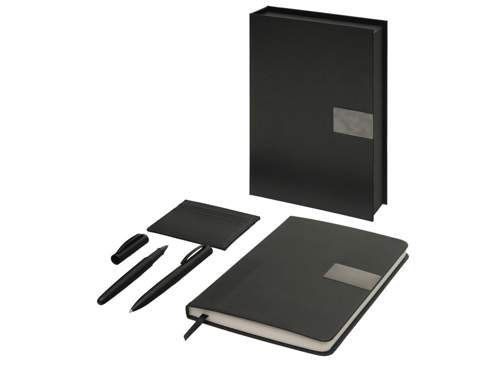 Подарочный набор Goethe с блокнотом А5, 2-мя ручками и картхолдером, черный купить оптом и в розницу с нанесением логотипа в Санкт-Петербурге