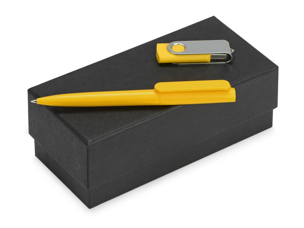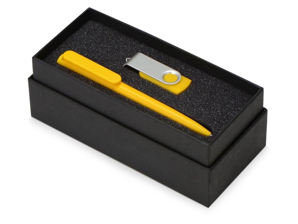 Подарочный набор Qumbo с ручкой и флешкой, желтый купить оптом и в розницу с нанесением логотипа в Санкт-Петербурге