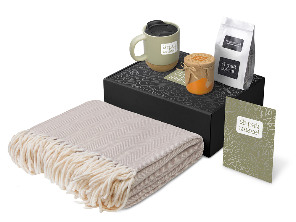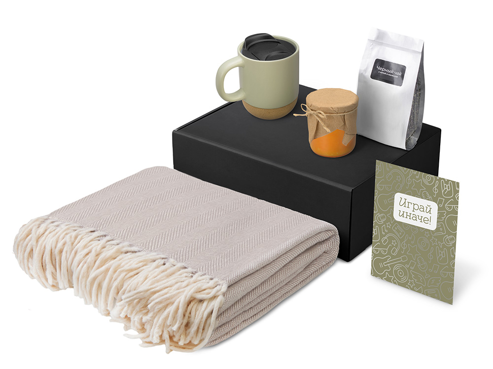 | Материал товара | плед - 100% хлопок, кружка - керамика, пробка, чай -пластик, мешок - нектаный материал (спанбонд), коробка -картон |