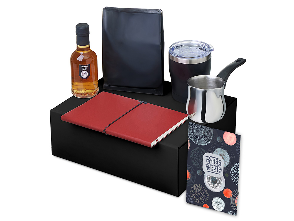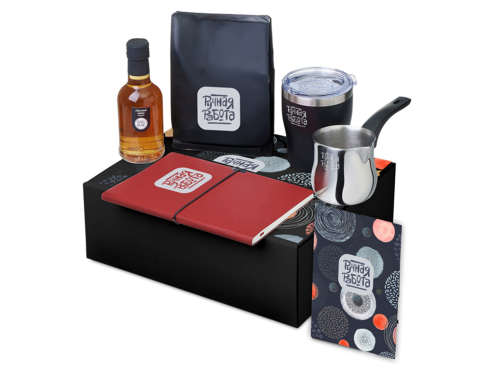 | Материал товара | сироп - стекло, блокнот - искусственная кожа, бумага, турка - нержавеющая сталь, бакелит, кофе - пластик, термокружка - нержавеющая сталь, керамика, полипропилен, мешок - нетканый материал (спанбонд), коробка -картон |