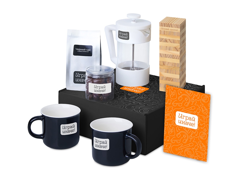 Подарочный набор Re:y. Together с френчпрессом, кружками и дженгой купить оптом и в розницу с нанесением логотипа в Санкт-Петербурге