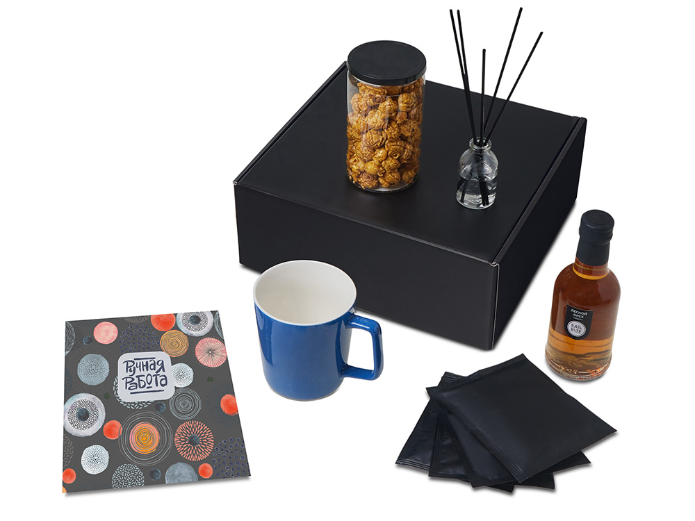 | Материал товара | диффузор - стекло, кофе в дрип пакете - пластик, кружка - костяной фарфор, попкорн - пластик, металл, мешок - нетканый материал (спанбонд), коробка - картон |