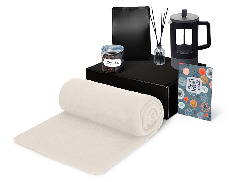 | Материал товара | плед - флис, полиэстер, кофе - пластик, френч-пресс - нержавеющая сталь, боросиликатное стекло, ПП пластик, диффузор - стекло, миндаль - пластик, мешок - нетканый материал (спанбонд), коробка - картон |