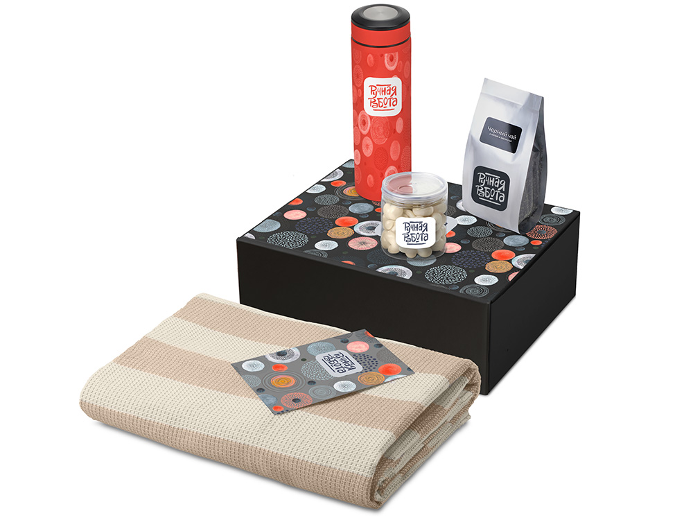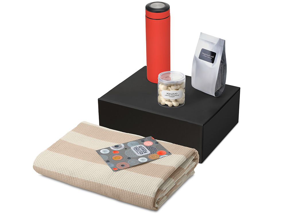 Подарочный набор Re:y. Warm с пледом, термосом и чаем купить оптом и в розницу с нанесением логотипа в Санкт-Петербурге