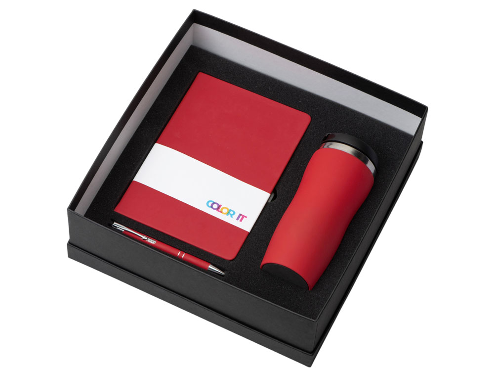 Color It — линейка, в которую входят хиты мерча в десяти самых популярных цветах. Еще никогда собрать сет под свой брендбук не было так просто. Широкая цветовая палитра серии позволяет создать идеальный набор в едином оттенке Pantone. Все товары имеют тактильно приятное покрытие софт-тач. Сет поставляется в коробке: мы продумали все, включая подарочную упаковку, за вас — осталось нанести лого! Термокружка оснащена плотно завинчивающейся крышкой, которая исключает проливание содержимого. Откидной клапан позволяет пить, не снимая крышку. Сохранение температуры осуществляется благодаря вакуумной изоляции и двойным стенкам. Бизнес-блокнот в твёрдой обложке с магнитным держателем для ручки имеет ляссе в тон обложки. Бумажный блок разлинован в линейку и выполнен из бумаги, полученной из древесины из специальных восполняемых лесных ресурсов, имеет сертификат FSC. Шариковая ручка имеет сменный стержень, поэтому такой мерч прослужит дольше обычной одноразовой ручки, долго напоминая о вас клиентам. - софт-тач покрытие на всех предметах набора; - объём термокружки: 350 мл; - блокнот А5 128 листов; - ручка с необычным слайдером; - подарочная упаковка из картона, оклеенного дизайнерской бумагой уже включена в набор.