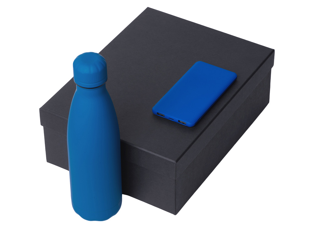 Подарочный набор с термобутылкой и повербанком С1, 5000 mAh, синий