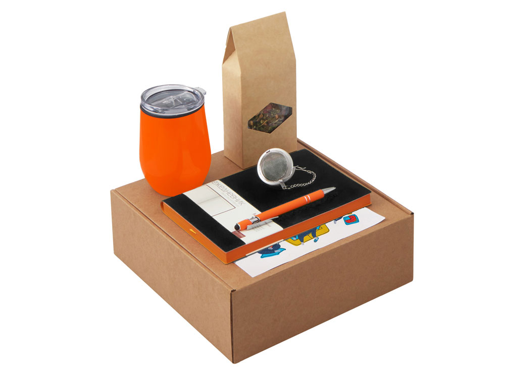 Набор Writea станет отличным подарком для сотрудников, клиентов и партнёров, подчеркнёт внимание к их комфорту и заботу о деталях. Он уместен как корпоративный подарок на праздники, юбилеи и деловые мероприятия, так и в качестве welcome-набора для новых коллег. Набор объединяет всё необходимое для комфортного рабочего дня: Ежедневник для идей, заметок и составления рабочих планов на день. В ежедневнике есть полезная справочная информация; Ручка, которая всегда под рукой; Практичная термокружка Pot отлично подойдет для использования как дома, так и в офисе, сохраняет тепло до 3-х часов; Ситечко для заваривания — незаменимая вещь для любителей чая. Оно помогает сохранить истинный вкус и аромат напитка, позволяя наслаждаться настоящим листовым чаем без лишних хлопот. Компактное и удобное, ситечко подходит для дома, работы, путешествий или отдыха на природе; Чай Малина с мятой - идеально подходит для вечернего расслабления после насыщенного дня; Набор стикеров — для ярких акцентов и персонализации вещей; Универсальный ложемент обеспечивает аккуратное размещение и надёжную фиксацию элементов, делая набор эффектным и презентабельным при вручении. Дополнительное преимущество — набор доступен в конструкторе наборов: компоненты можно заменить и собрать индивидуальный вариант под стиль компании или вкусы получателя.