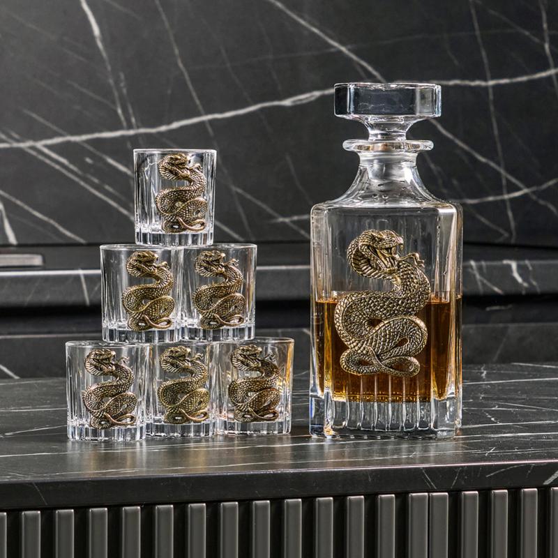 • Комплект включает шесть стопок и штоф с изысканной накладкой "Змея"
