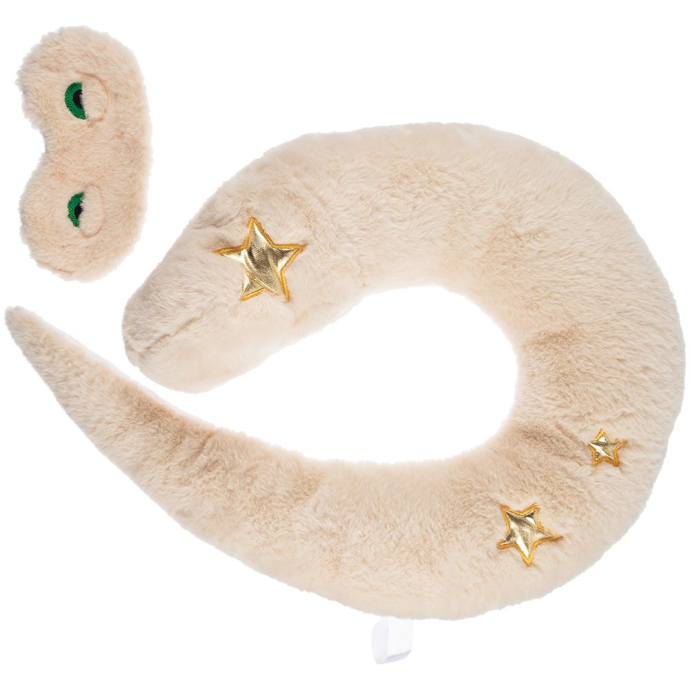 Змея, кусающая саму себя за хвост, — известный символ цикличности жизни и вечного круговорота событий. Цикл сна и бодрствования желательно тоже не нарушать: наполнить день энергией и погрузиться в приятную негу легко в компании с пушистой змейкой-подушкой под шею Kussen и такой же мягкой маской для сна с забавными полуприкрытыми глазками.