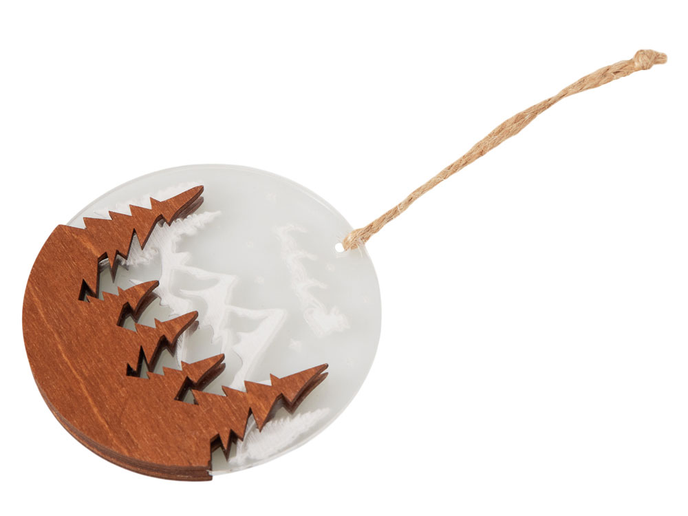 Элегантная подвеска, выполненная из сочетания прозрачного акрила и натуральной березовой фанеры. Комбинация материалов придаёт изделию лёгкость и современный дизайн, а натуральная текстура фанеры добавляет теплоту и уют. Идеальна для украшения ёлки, подарочной упаковки или интерьера. Такой сувенир станет стильным корпоративным подарком или праздничным акцентом, подчёркивая внимание к деталям и современный вкус.
