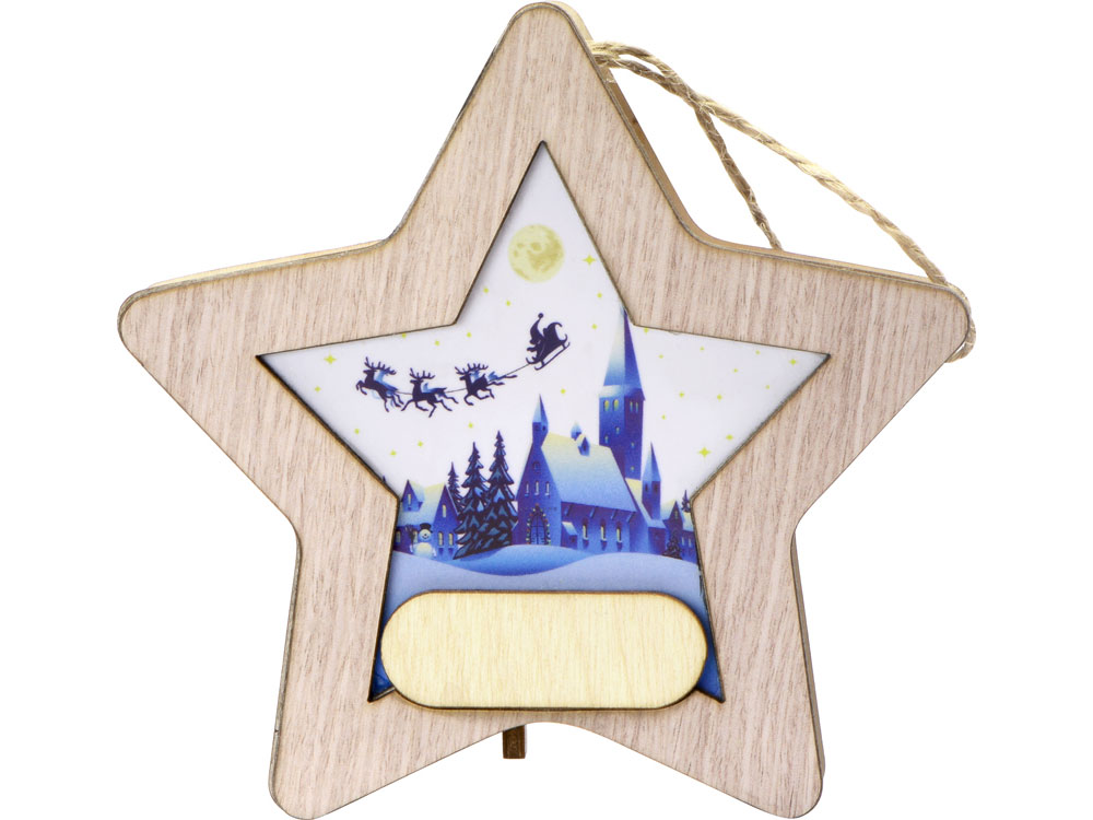 Новогодняя подвеска для елки станет прекрасным вариантом подарка: посмотрите, эти игрушки видно не только при свете дня, но и в темноте, ведь они могут светить сами! Игрушка с подсветкой выполнена из фанеры, фрагмент с изображением — напечатан на пропускающем свет материале. Подвеска сияет мягким разноцветным светом, подчеркивая пейзаж. Станет прекрасным вариантом для подарка, который будет радовать ваших адресатов долгие годы, каждую зиму красуясь на зеленых лапах елки.