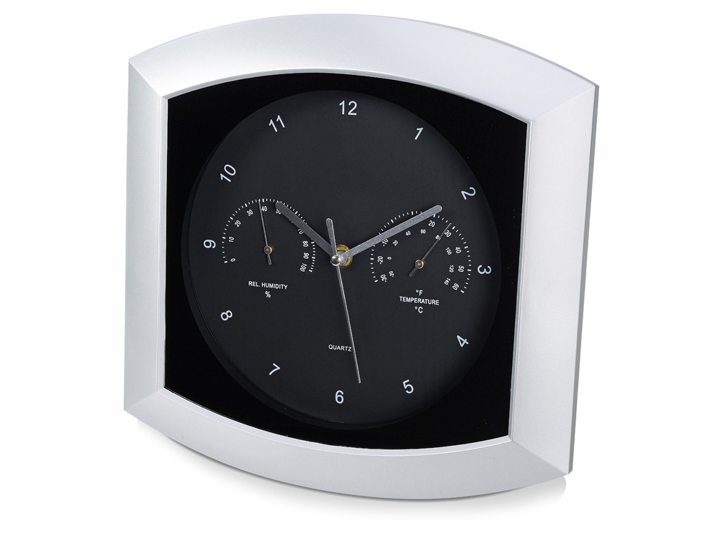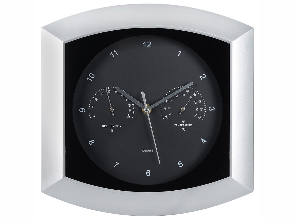 Погодная станция настенная Кусто, серебристый/черный (Р) купить оптом и в розницу с нанесением логотипа в Санкт-Петербурге