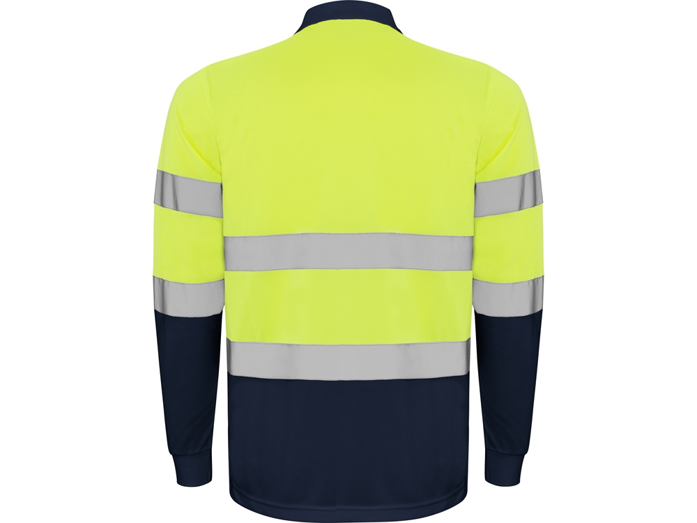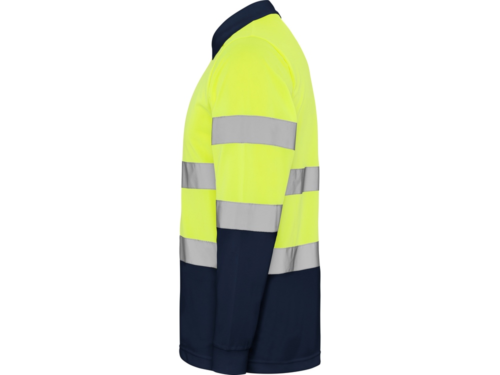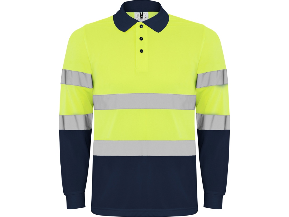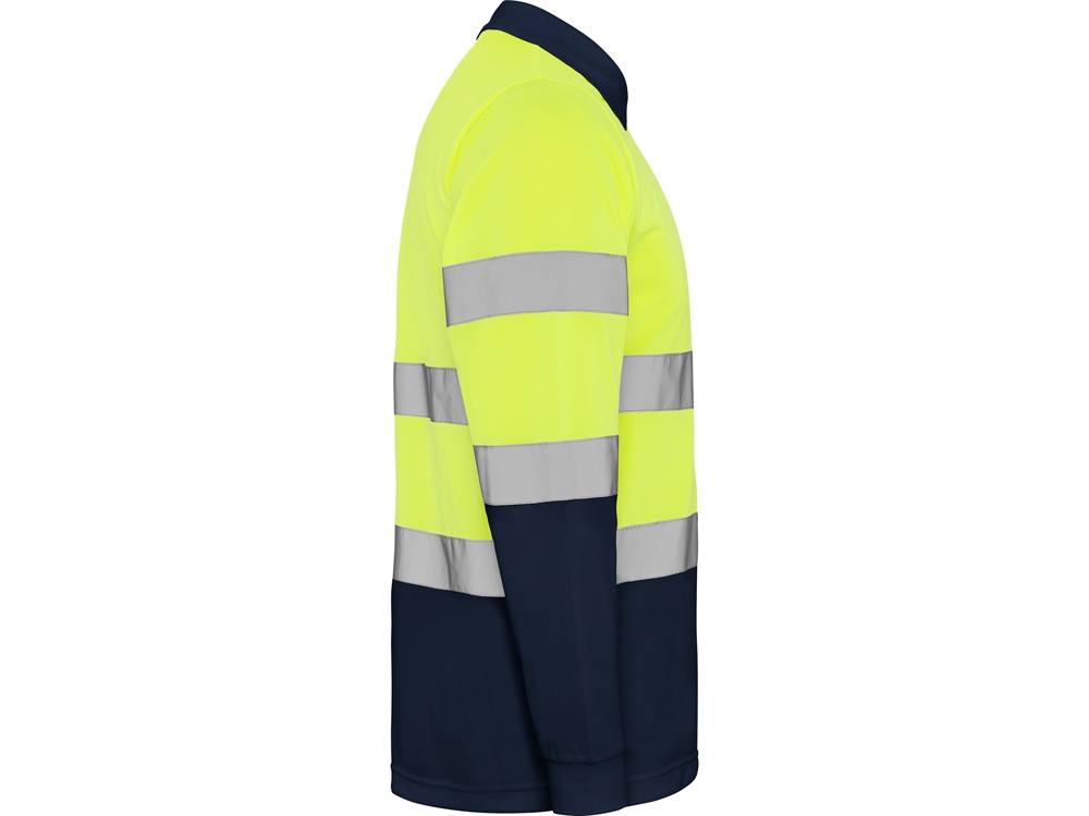 Техническая рубашка поло с длинными рукавами. Планка на 3 пуговицы. Воротник и манжеты в рубчик 1 x 1. Две горизонтальные светоотражающие полосы на туловище и рукавах. Ткань предотвращает зацепление.