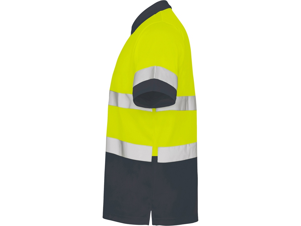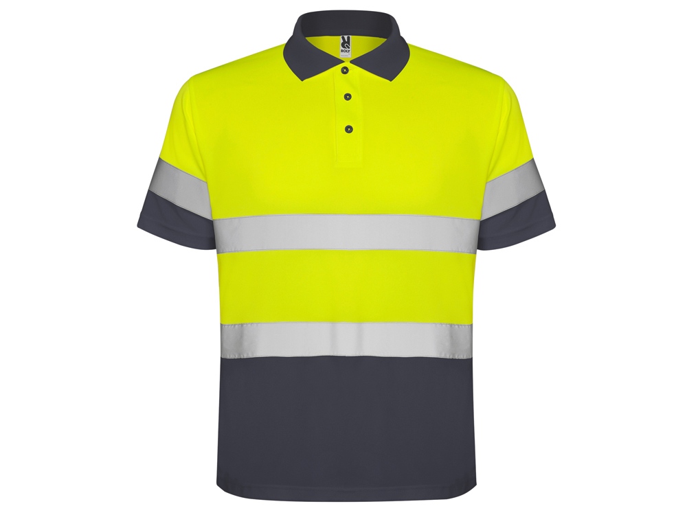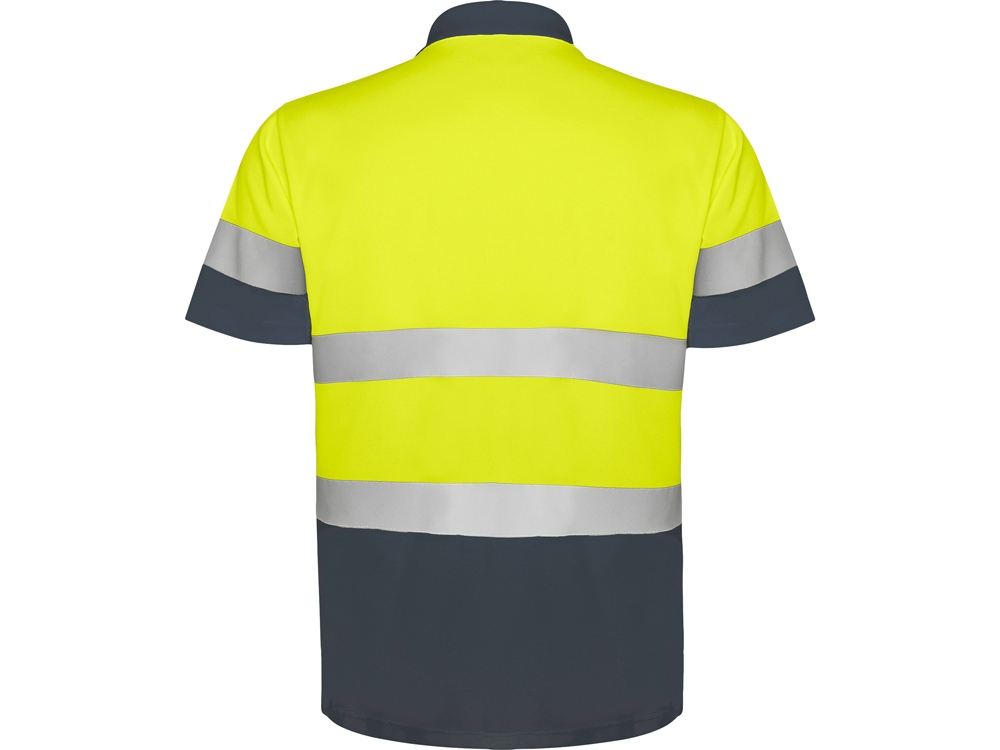 Техническая рубашка поло с короткими рукавами. Планка на 3 пуговицы. Воротник из риба 1 x 1. Две горизонтальные светоотражающие полосы на туловище и рукавах. Ткань предотвращает зацепление.