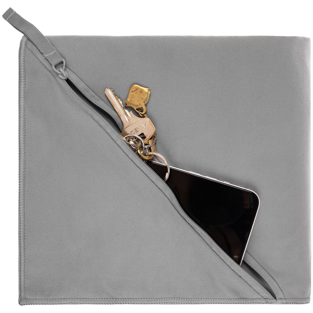 Модель имеет удобный карман на молнии в одном из углов для хранения мелочей или защиты телефона от песка на пляже.
