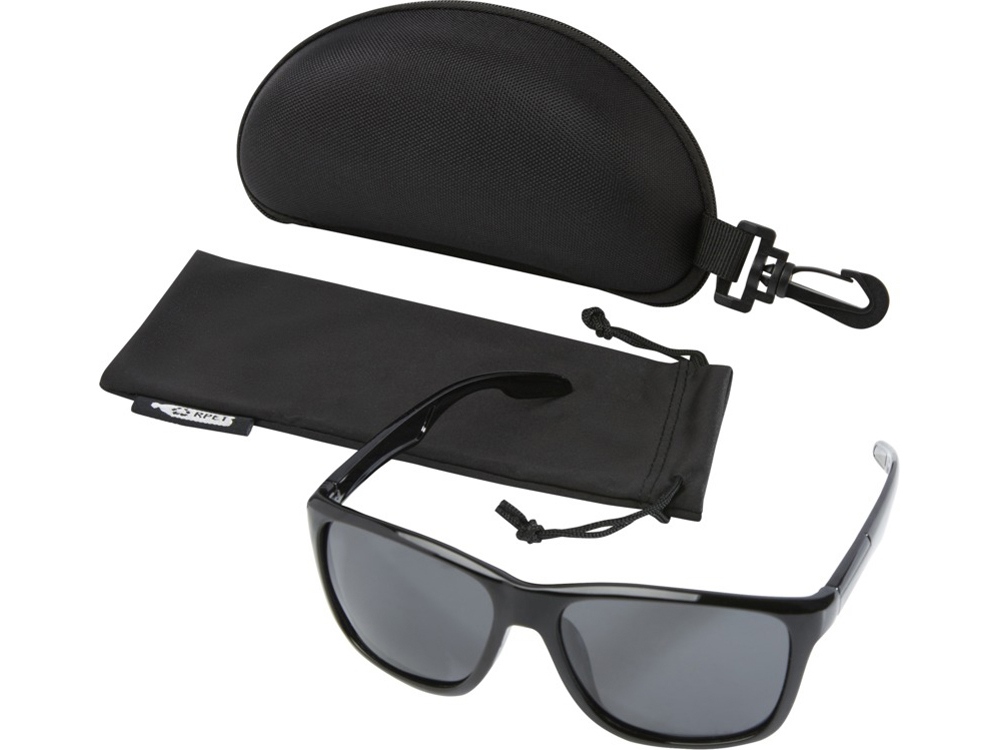 Поляризованные спортивные солнцезащитные очки из пластика растительного происхождения. Оправа и заушники с высококачественной отделкой изготовлены из материала Rilsan Clear G850 Rnew, который является полимерным производным продуктом касторового масла. Этот материал является экологичной альтернативой традиционным видам пластика и отлично подходит для производства легких и гибких оправ для удобных очков. Линзы поляризованы, поэтому они не отражают солнечный свет, что делает эти очки идеальным вариантом для вождения автомобиля или активных занятий на свежем воздухе в зимнее или летнее время. Эти очки соответствуют требованиям стандарта EN ISO 12312-1, имеют линзы со степенью защиты UV400, которые относятся к категории 3. Поставляются с мягким чехлом для хранения (18 x 9 см) из переработанного РЕТ-пластика, также выполняющего функцию очищающей салфетки. Все упаковано в жесткий чехол для хранения (18 x 8 x 6,5 см), также изготовленный из переработанного РЕТ-пластика.