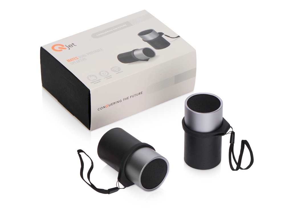 Портативные парные колонки Qjet TWS Mates с черными кольцами купить оптом и в розницу с нанесением логотипа в Санкт-Петербурге