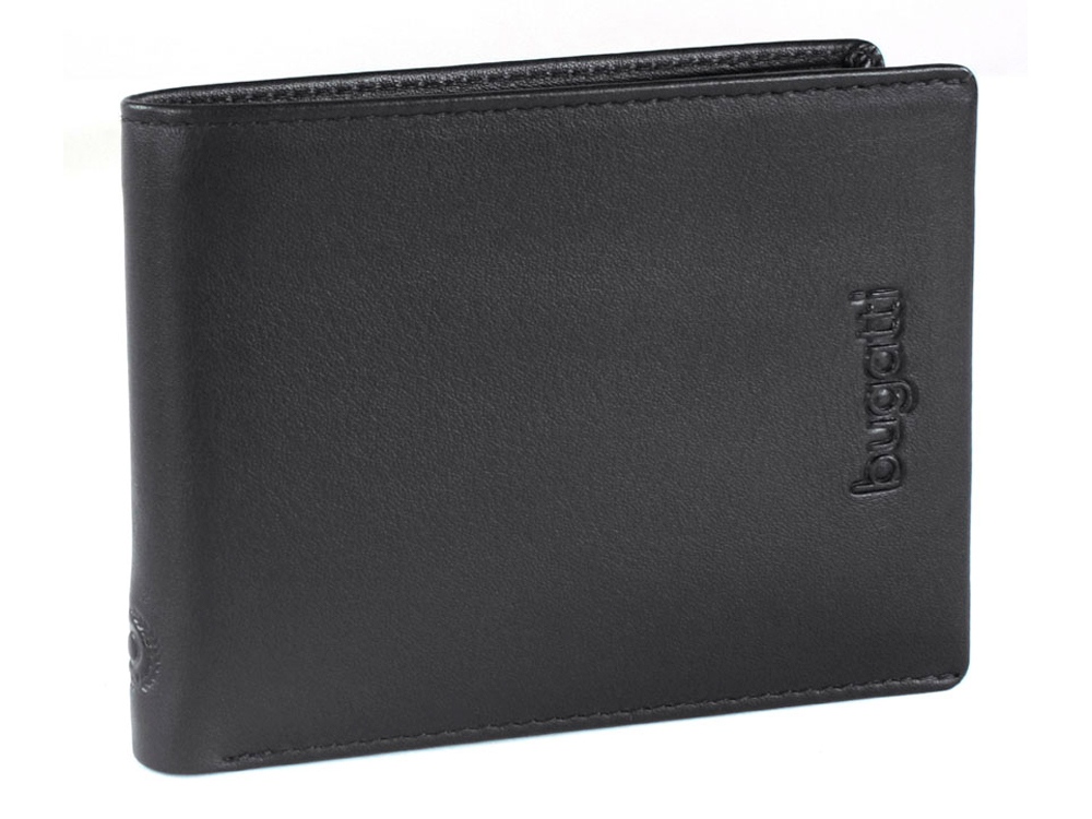 Портмоне BUGATTI Vertice, чёрное, натуральная воловья кожа, 10,5х1,5х8,5 см